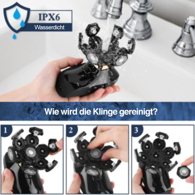 • IPX6 Wasserdicht: Der Elektrorasierer für Männer hat eine IPX6 wasserdichte Funktion, der Rasierer unterstützt die Rasur mit Bartbalsam oder ohne Bartbalsam für die Nass- oder Trockenrasur. Sie können den Rasierer direkt unter fließendem Wasser reinigen. (Hinweis: Bitte heben Sie jede Klinge an, um das Haar zu reinigen)