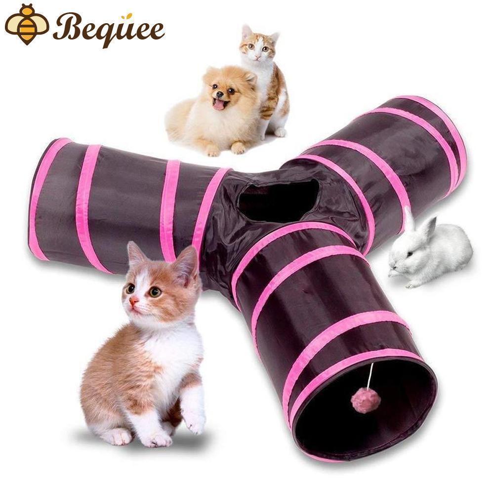 Bequee 3 Wege Haustiere Rohr faltbare Tunnel