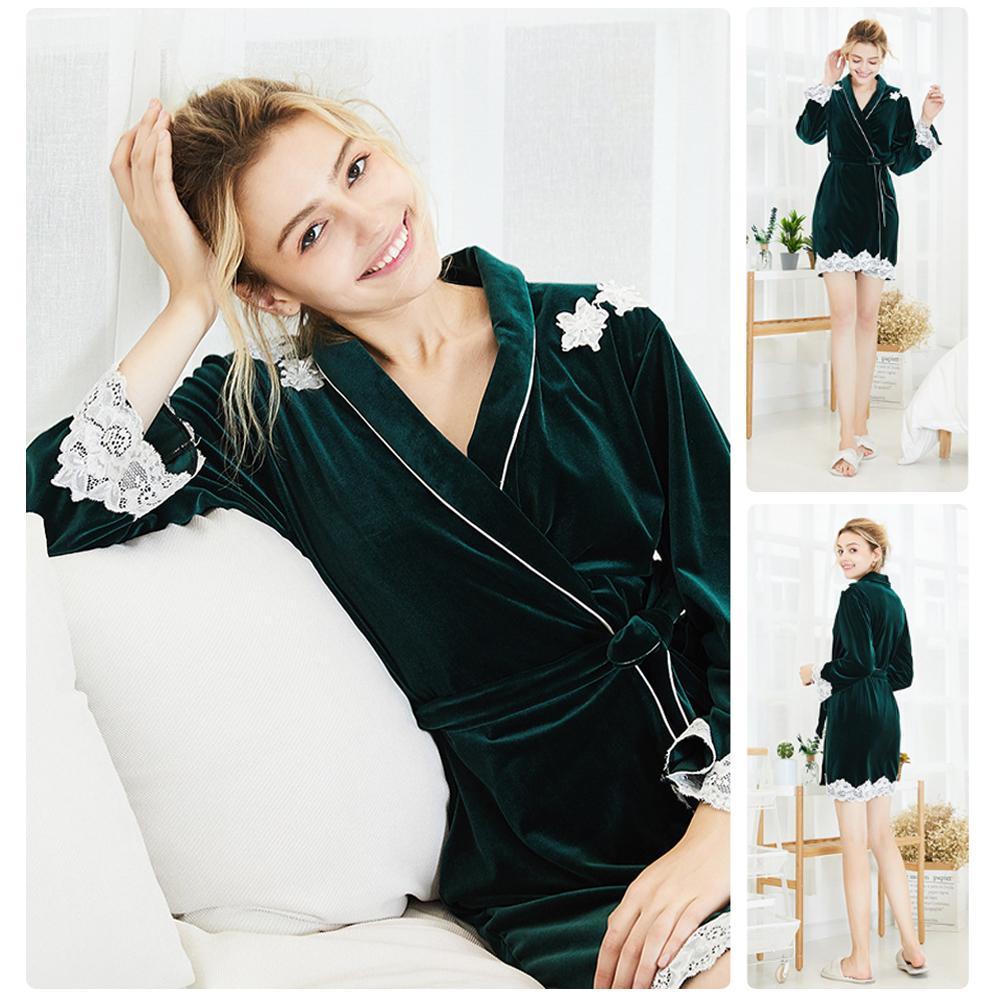 Damen Abziehbild Samt sexy Schlafrock