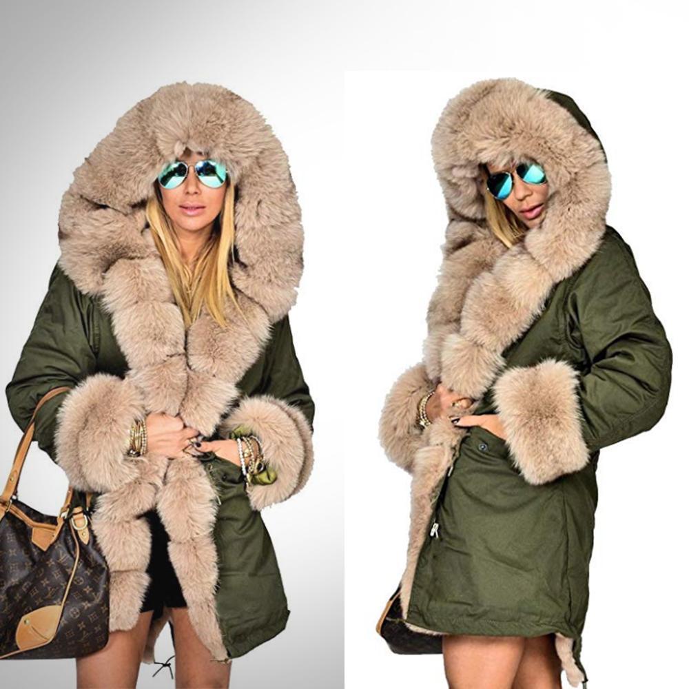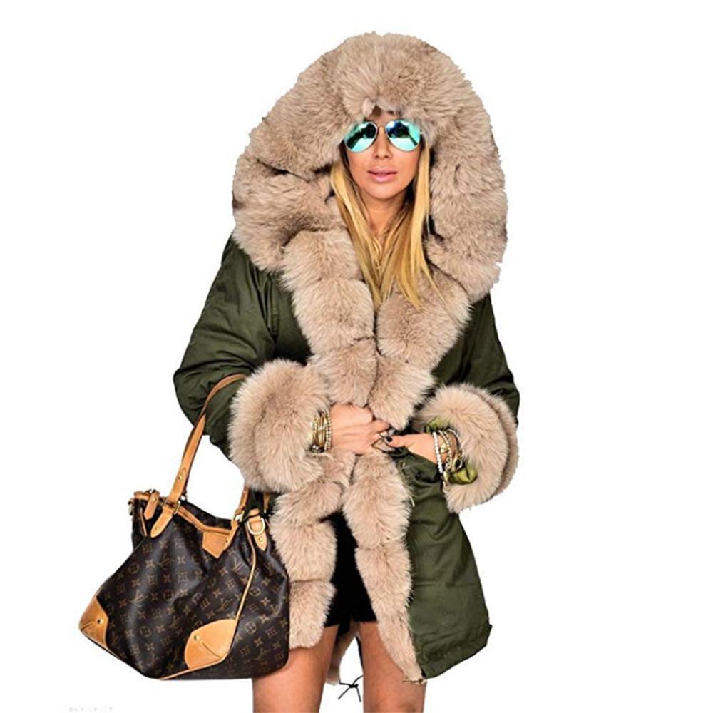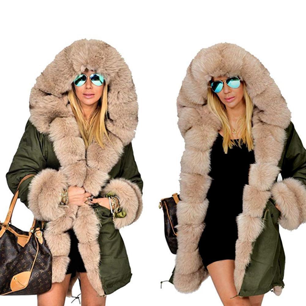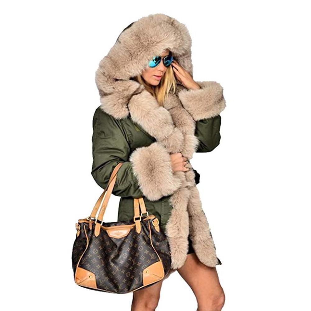 Dicker Winter Mantel mit großer Kunstpelz- Kapuze