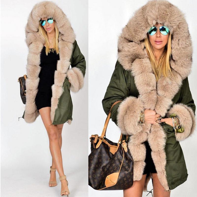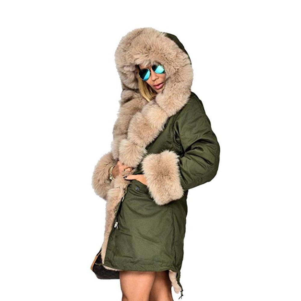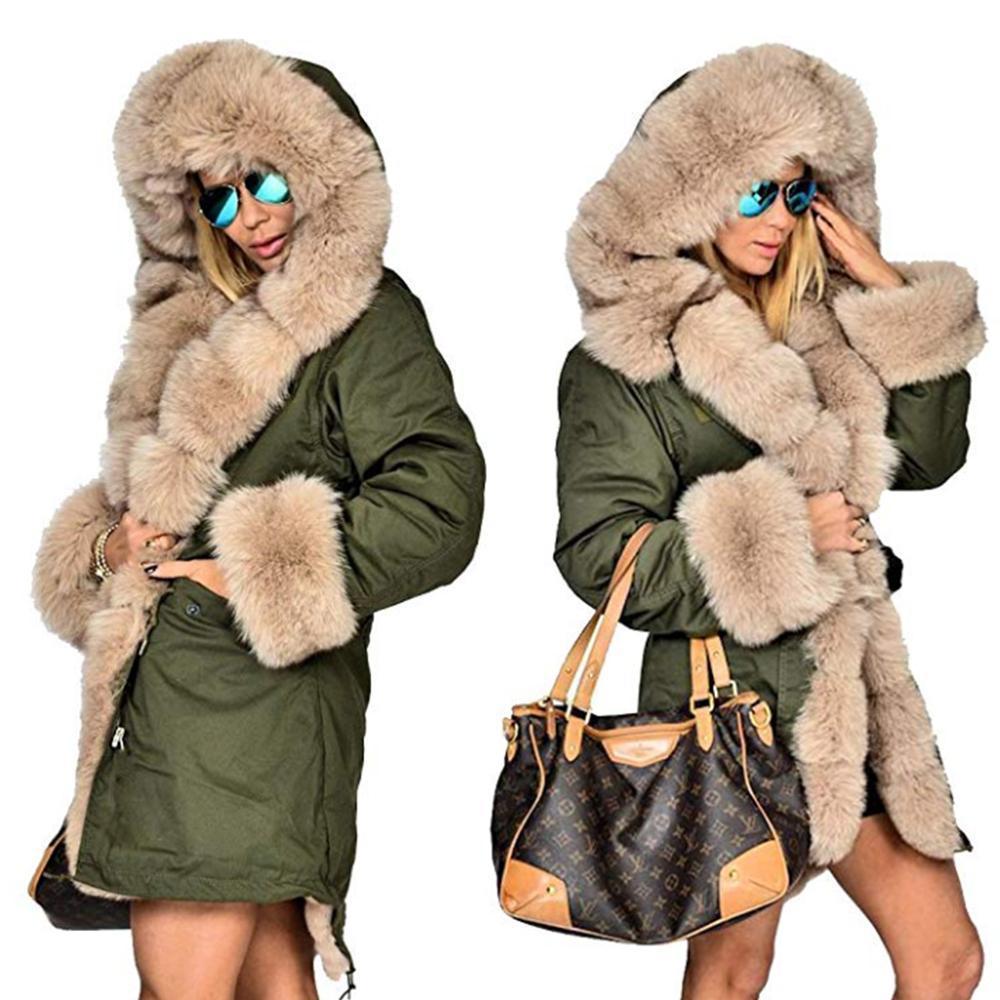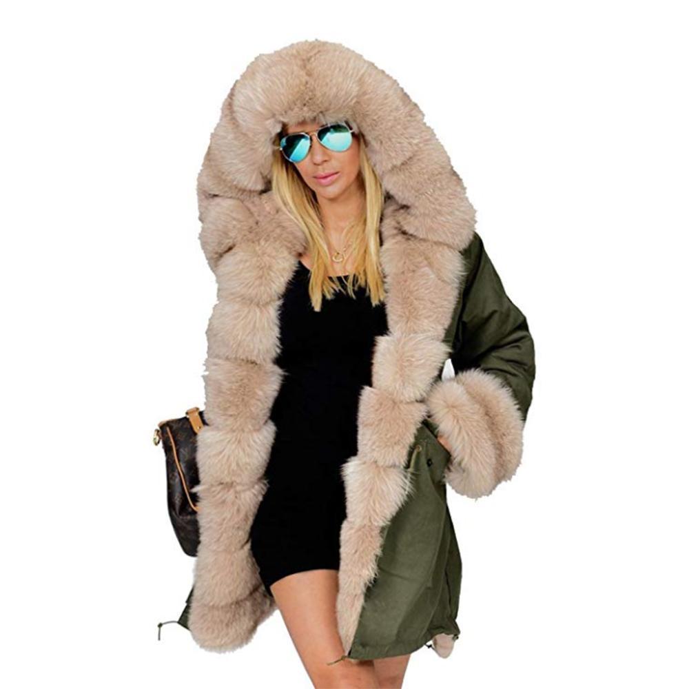 Dicker Winter Mantel mit großer Kunstpelz- Kapuze
