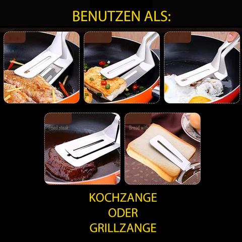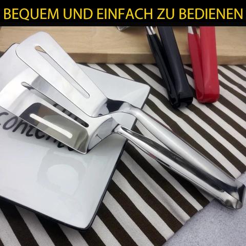 • All-in-One-Design. Es ist nicht nur eine Bratschaufel, sondern auch eine Klammer / ein Clip. Es schneidet und schaufelt, schiebt Steaks ein und erleichtert das Umdrehen. Das spezielle Aushöhlungsdesign erleichtert das Austreten von Öl und reduziert überschüssiges Öl. Die Weithalszange ist leicht zu greifen, egal ob es sich um Gemüse, großes Steak oder Brot handelt.