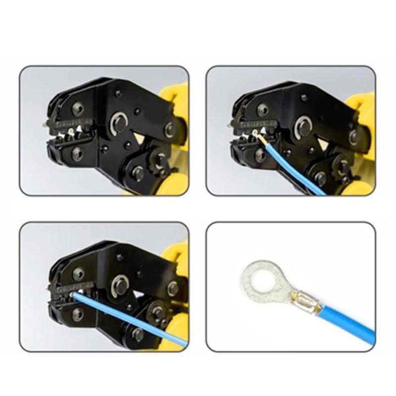 Die Drahtbördelmaschine ist praktisch, effizient und unschädlich für die Kabelseele. Es ist einfach zu bedienen, drücken Sie einfach auf den Griff und betätigen Sie ihn einmal, um die Drähte und Klemmen erfolgreich zu drücken.