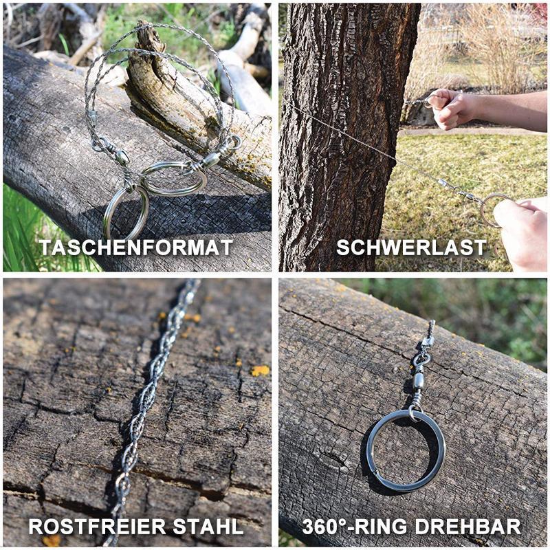 • stabile Ausführung: Dank der extrem starken Griff-Ringe ist die Draht-Säge für unterwegs sehr robust und liegt sicher in der Hand. Die Metall-Ösen am Ende der Säge-Schnur sorgen für festen Halt bei Säge-Arbeiten.