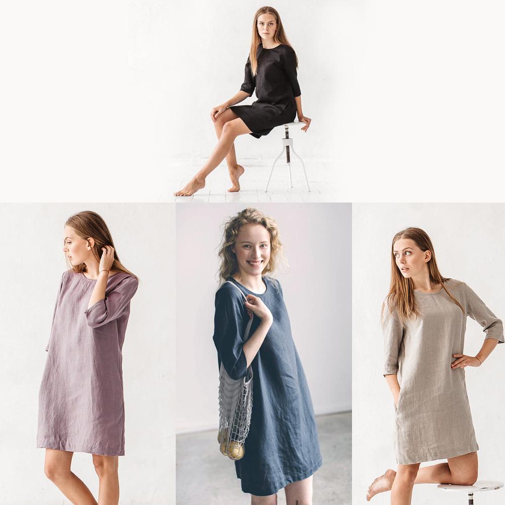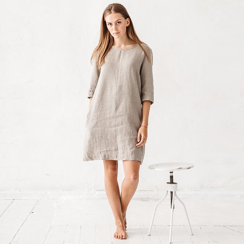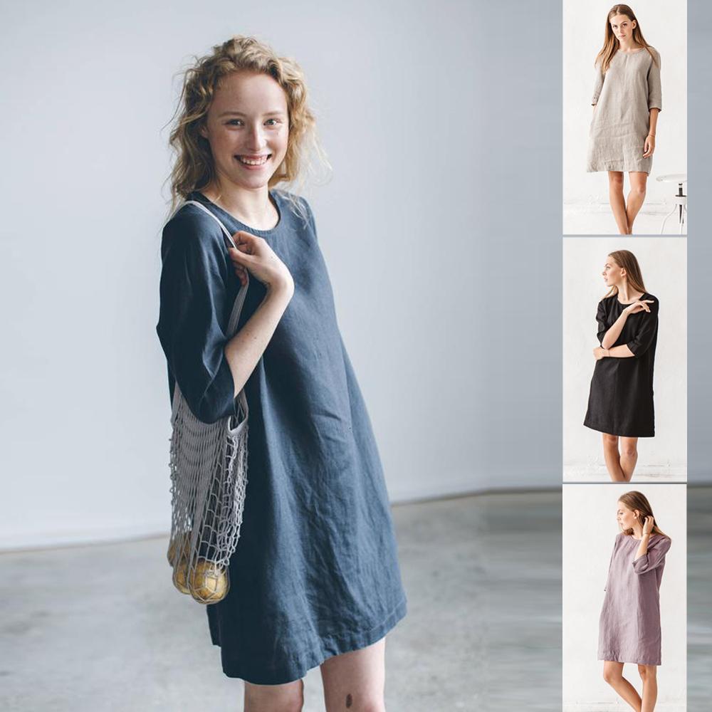 Dreiviertel-Ärmel-Kleid mit Baumwollen Leinen
