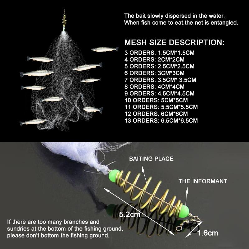 • ➤ Starke Praktikabilität: Angelköder-Gießnetze aus elastischem Material können klein, leicht und tragbar gefaltet werden. Eine Vielzahl von Maschengrößen, um Ihre Angelbedürfnisse für verschiedene Fischarten zu erfüllen