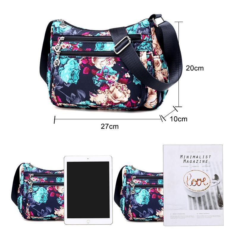 Farbenfrohe Blumen Große Wasserdichte Nylon-Umhängetasche