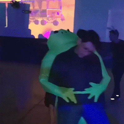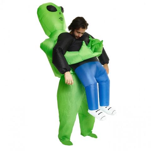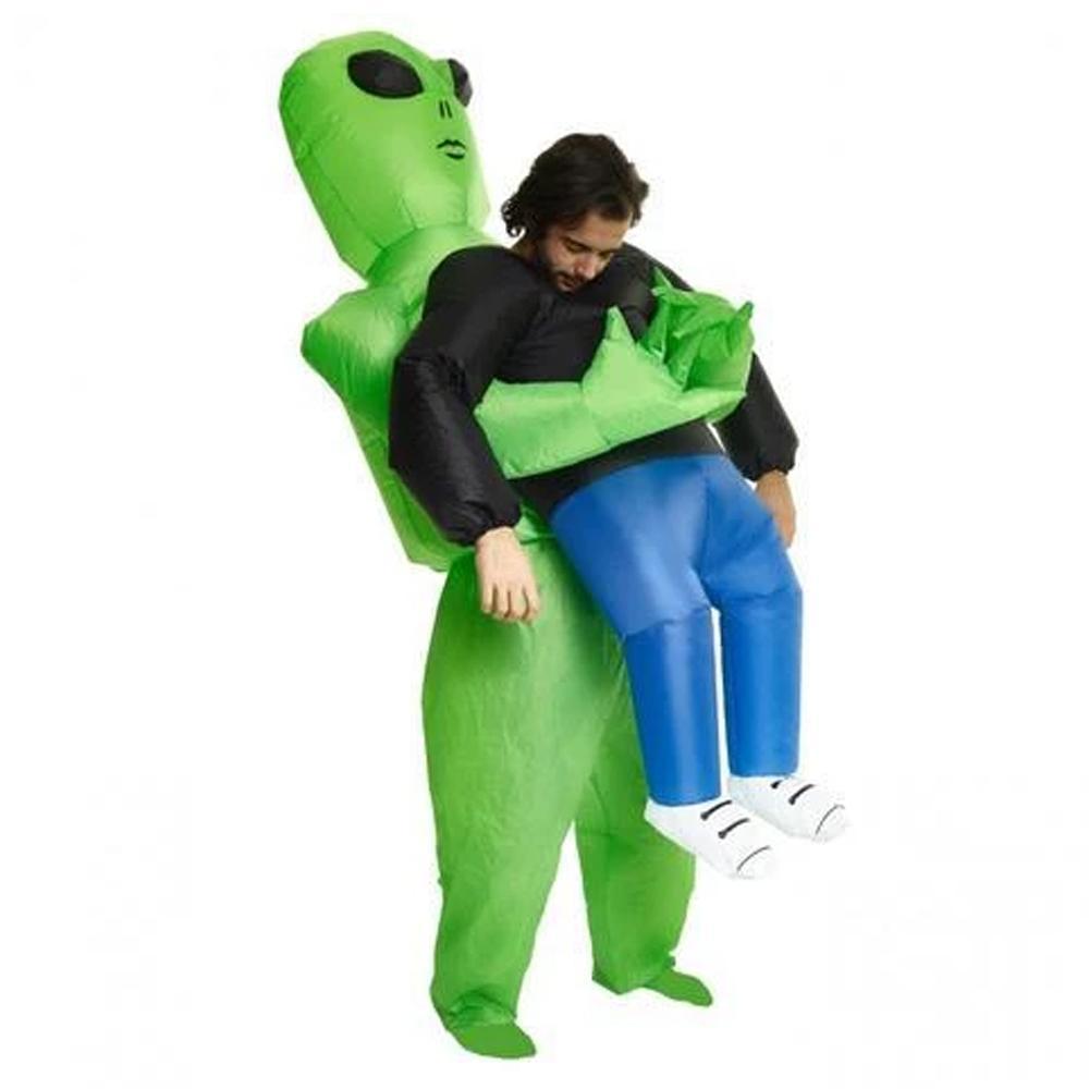 Grüner Ausländer, der menschliches Kostüm trägt