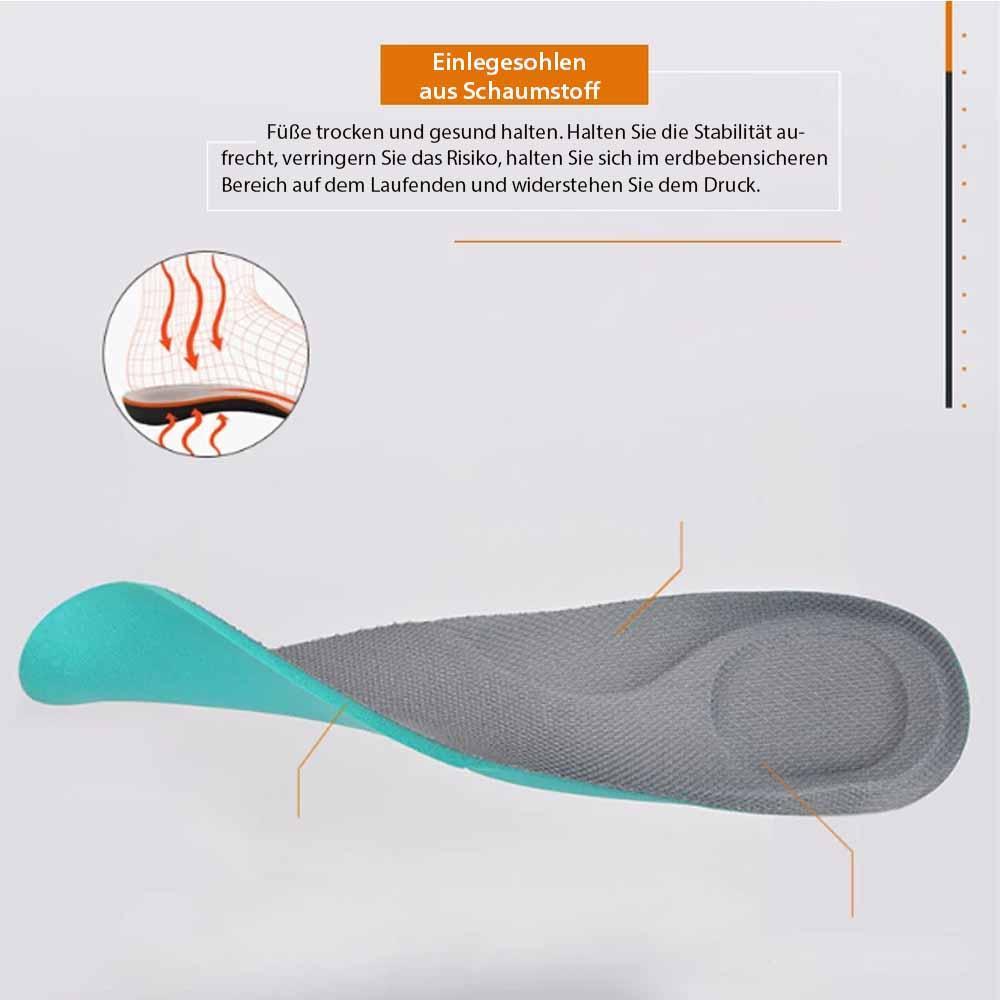 • Trockene und bequeme Einlegesohlen aus Schaumstoff - halten die Füße trocken und gesund. Halten Sie die Stabilität aufrecht, verringern Sie das Risiko, halten Sie sich im erdbebensicheren Bereich auf dem Laufenden und widerstehen Sie dem Druck.