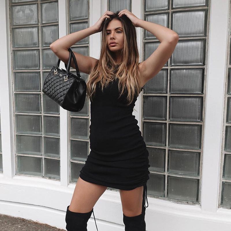 Schlankes Faltenkleid mit Rundhalsausschnitt