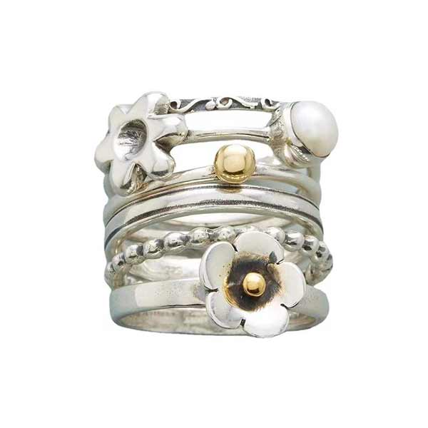 Withinhand Ring aus Sterlingsilber mit Blumen und Perlen